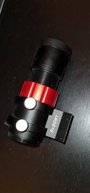 Πωλειται τηλεφακος οδηγησης (guidance scope) 30x120 (f.4) μαζι με camera 105 Τιμη, 80 ΕΥΡΩ και τα δυο ειναι της εταιριας SvBONY, Τεχνικα χαρακτηριστικα καμερας Image Sensor 1/3” COMS color sensor Image Resolution 2M pixels (1920*1080) USB Type USB2.0 Pixel Size 3μm X 3μm Shutter Electronic rolling shutter Exposure Time 15ms-500ms Maximum Frame Rate 30FPS(1920*1080) ADC 10 bit Interface Type Standard UVC protocol Cable Length 1.8m Weight 100g Support System Windows7,8,10 Support Telescope A telescope with 1.25” diagonal Power Consumption 150MA@5V Working Humidity 30%-80% Storage Humidity 20%-90% Operating Temperature 0°C to +50°C Storage Temperature -10°C to +60°C