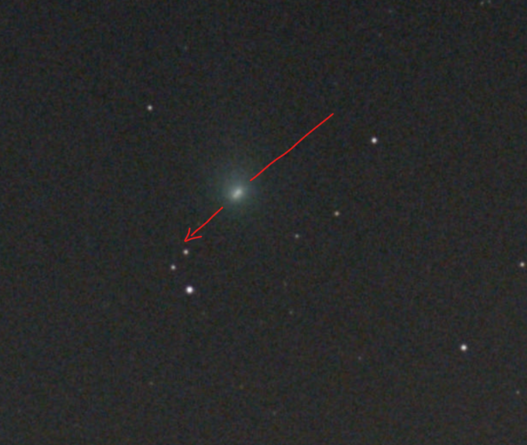 Μια πενιχρή προσπάθεια καταγραφής του κομήτη C/2025 A6 (Lemmon) με το S50: Μετά τα 5-6 λεπτά το stacking του Seestar εμφανίζει τον κομήτη ως trail λόγω της σχετικής κίνησης ως προς το αστρικό υπόβαθρο: Φαντάζομαι ότι για να αποτυπωθεί σωστά με την τωρινή φωτεινότητα πυρήνα & ουράς (όπως π.χ. φαίνεται εδώ από τον @dkate), απαιτεί πολύ περισσότερα frames και επεξεργασία σε πρόγραμμα τύπου PixInsight / Siril στακάροντας ξεχωριστά το αστρικό υπόβαθρο και ξεχωριστά τον κομήτη ώστε στο τέλος να λάβει κανείς το επιθυμητό αποτέλεσμα.