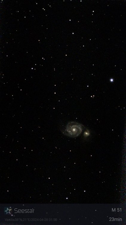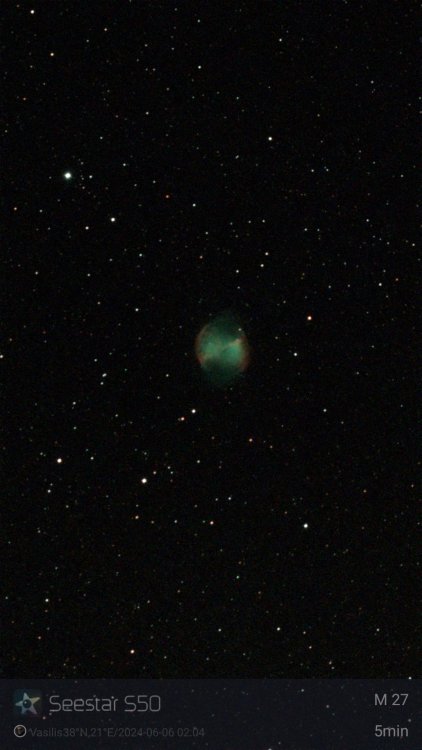 Αγαπητέ Μιχάλη, ονομάζομαι Βασίλης και μένω στην Πάτρα μέσα στο κέντρο. Το seestar το αγόρασα τον περασμένο Οκτώβρη το πρόλαβα στα 750€ από πλανητάριο Θεσσαλονίκης. Όντας ερασιτέχνης στο σπορ ήθελα κάτι γρήγορο και εύκολο και το seestar είναι ακριβώς αυτό που θέλω μικρό στην μεταφορά, εύκολο στο στήσιμο. Το έχω πάρει μαζί μου σε πλατεία, καφεδάκι και παρατήρηση. Τώρα αν θες επαγγελματικές φωτογραφίες ναι δεν είναι το ιδανικό. Επισυνάπτω μερικές φωτογραφίες να της δουν τα μέλη και να κρίνουν. Υ/Σ...η φωτογραφίες είναι ακατέργαστες όπως της πήρα από το seestar.
